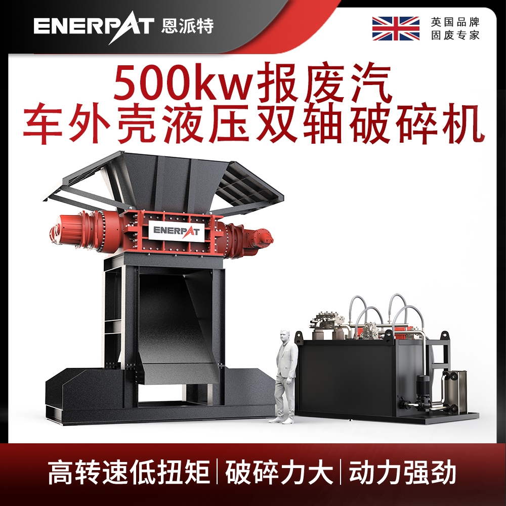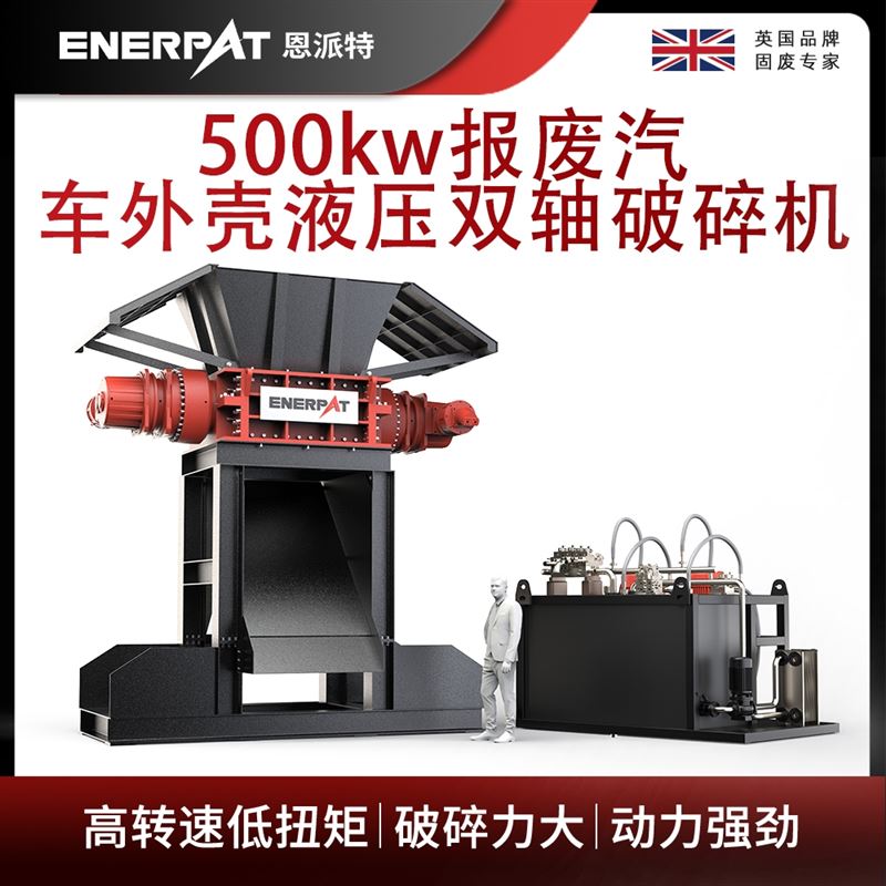 恩派特500kw报废汽车外壳液压双轴破碎机能够处理各种形状、大小和材质的物料,不受物料软硬程度、密度高低等因素的限制。无论是单一种类的废弃物,还是混合在一起的多种废弃物,都可以放入撕碎机进行处理。这种广泛的适应性使其在众多固体废弃物处理场景中都能发挥作用。